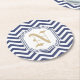 Nautical Navy Chevron Monogramed Round Paper Coaster