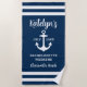 Personalised nautical themed bachelorette weekend beach towel features a coastal style boat anchor and stripes design with custom text that can be personalised with the bachelorette's name and the weekend getaway destination and date. Classic coastal navy blue and white colour scheme. Makes a great gift for the bridesmaids, family. and friends attending.