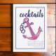 Nautical Navy Pink Anchor Preppy Cocktail Party Invitation