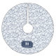 Add a coastal touch to your holiday decor with our navy and white Christmas tree skirt. Design features a pattern of looping nautical rope in navy blue on white, with your single initial monogram and family name displayed on a navy blue badge.