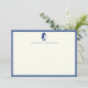 Nautical navy seahorse custom note card. A navy blue and ivory nautical themed note card is a great addition to any stationery wardrobe.The card can be personalised with the inclusion of a name. The back of the card is in a modern, elegant and stylish striped ivory and navy.