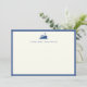 A navy blue and ivory nautical boat themed flat note card. This is a great addition to any personal or professional correspondence wardrobe. The card can be personalised with the inclusion of a name. The back of the card is in a modern, elegant and stylish striped ivory and navy.