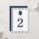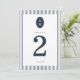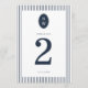 Nautical Wedding Table Number Card in classic navy and white — a chic coastal reception table sign perfect for elegant seaside weddings. Inspired by timeless Coastal Elegance and yacht-club aesthetics, this navy stripe table number features a refined monogram accent and crisp preppy layout. Perfect for the modern coastal bride. Pair with matching menus, place cards, and striped reception stationery for a polished wedding tablescape.