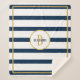 Nautical Navy Stripes Custom Monogram Name Sherpa Blanket