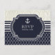Nautical Navy & White Elegant Beach Wedding RSVP Invitation Postcard