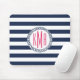 Nautical Navy & White Stripe w/ Pink Monogram Mouse Pad