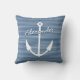 Nautical nursery decor pillow with boat anchor. Navy Blue sailing theme design with pinstripe pattern. Cute accessory gift idea for nautical baby room or kids bedroom. Maritime ship anchor print with personalised monogram or name. Combine it with your nautical bedding fabric.