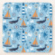 Nautical Ocean Blue and Orange Square Paper Coaster