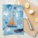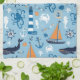 Nautical Ocean Blue and Orange Tea Towel