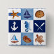 Original watercolor painted design by Sandra Gale, featuring blocks of nautical themed drawings like star fish, anchor, ship, turtle, and shells. Great design for the summer, beach homes, bungalows or for anyone who loves the beach, ocean or fish.