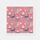 A fun nautical ocean design features a deep rose pink background with blue, navy blue, and white sailboats, whales, octopus, starfish, ship wheels, anchors, crabs, and more!