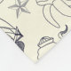 Create a personalised blanket that's perfect for your beach house. It has an all over pattern of simple nautical illustrations including assorted fish, sea turtles, old ships, ships wheels, shells, nautical stars and crossed cannons. The dark indigo blue illustrations are in the style of vintage sailor tattoos and are set against a cream or ivory white background.
