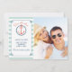Add your own photo and personal wedding information to this save the date card. It features a nautical coral colour anchor with mint green and navy blue stripes. The design is carried over to the back side with an anchor and stripes.