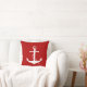 White anchor with rope on red throw pillow. Perfect decor for nautical living room, bedroom or hallway.