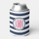 Make sure your yacht club style is on point with these preppy-chic can coolers! Design features nautical navy blue and white stripes and a circular rope badge with your three-initial monogram in contrasting hot magenta pink.
