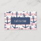 Nautical pink stripe navy blue anchor pattern business card