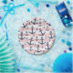 Summer design featuring navy blue anchor pattern on a blush pink and white stripe background.