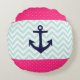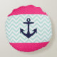Nautical Pink White Mint Chevron Anchor Pattern Round Cushion
