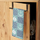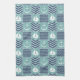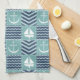 A quilt inspired pattern of stormy turquoise squares, decorated with a white sailboat and anchor, and deep navy blue squares, accented with paler blue chevrons and waves, is accented by white stitching to create a classic nautical feel.