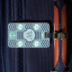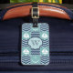 A quilt inspired pattern of stormy turquoise squares, decorated with a white sailboat and anchor, and deep navy blue squares, accented with paler blue chevrons and waves, is accented by white stitching to create a classic nautical feel. Customise this luggage tag with your initial on the front and details on the back to make finding your luggage easier when you travel.