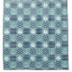 A quilt inspired pattern of stormy turquoise squares, decorated with a white sailboat and anchor, and deep navy blue squares, accented with paler blue chevrons and waves, is accented by white stitching to create a classic nautical feel.