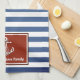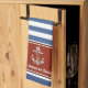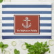 Fun navy blue stripes over a classic red nautical theme design with your family name personalised.
