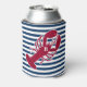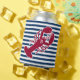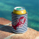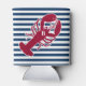 Nautical Red Lobster Monogram Blue White Stripe Can Cooler