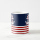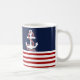 Stylish decorative mug features a nautical red and white stripes with a white anchor vector illustration on a navy blue background you can easily change the colour. Matching items available in our store. www.zazzle.com/giftsforanyoccasions