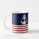 Nautical Red White Stripes and White Anchor Coffee Mug