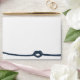 Nautical rope knot and anchor envelope with navy blue and white stripes inside to compliment matching wedding invitation set. Personalise return address on back flap.