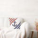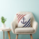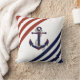 Nautical rusty blue anchor/rope/red/white stripe cushion