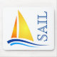 A vibrant nautical design, this mouse pad features a modern graphic sailboat with bright sails and text. If you wish to edit the sample text, simply replace the text shown in the design template with your own.