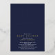 Adorable nautical baby shower invitation featuring a gold foil sailboat set on a dark navy blue background with a blue & white stripe back.