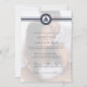 This elegant nautical wedding invitation features a classic navy blue and white style with a classic look and your photo in the background faded behind the text. Design features a navy blue sailboat illustration with a triple line across the top. Elegant block and script lettering in matching navy blue complete the look. Perfect for yacht club, boat, beachside or summer weddings.