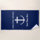 Nautical Sailing Anchor Navy Blue Welcome Aboard Beach Towel