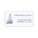 Modern navy sailing boat return address label which can be personalised with the inclusion of a name and return address.