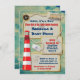 Awesome Nautical Sailor Baby Shower party invitation on old stained paper with a cloud filled antique sky background. Super nice detailed invitation with compass, sailor hat, ship in a bottle, lighthouse, sailor making a muscle and rope. Also Great for a fish fry, retirement party ,kids birthday party or bachelorette party. Plenty of room on the back for extra info. Hand drawn Illustration by McBooboo.