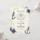 A trendy, nautical-save the date announcement featuring length of ropes, anchors and diamond-rosettes in navy blue against an off-white background. The card is easy to customise with your wording, font and font colour. Not exactly what you're looking for? All our products can be custom designed to meet your needs at no extra charge. Simply contact us at askpixieprints@aol.com. Coordinating products available at your request at no additional charge.