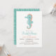 Nautical Seahorse bridal shower invitation. Invite features coral and aqua colour seahorse.