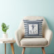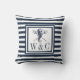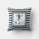Nautical Seahorse Monogram Navy Blue Striped Cushion