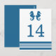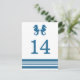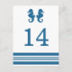 Elegant and classic Nautical Seahorse Wedding Table Number Postcard with a pair of simple seahorses and an array of stripes in dark navy blue and white. This nautical beach themed table card can be easily customised with your wedding details. For more customisation options, click on the Customise It button.