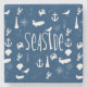 nautical seaside beach and ocean theme Typography with anchors, whales, shells and more in navy blue and white stone coaster