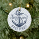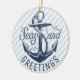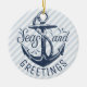 Nautical SEAsons Greetings | Blue and White Stripe Ceramic Ornament