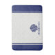 Add an upscale touch to your coastal decor style bathroom with this bath mat printed with a colour palette of navy blue, light grey and cream. Subtle damask pattern with navy contrasts is accented with a navy colour shell and can be optionally personalised with your name text. See the shower curtain or coordinating towel linens in this same design collection on Zazzle.