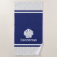 Add an upscale touch to your beach or boat time with this beach towel printed with a colour palette of navy blue, light grey and cream. Subtle damask pattern with navy contrasts is accented with a simple sea shell and can be optionally personalised with your name text. See the tote bag and more coordinating items in this same design collection on Zazzle.