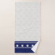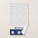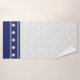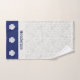 Add a upscale touch to your coastal decor style bathroom with these bath linens printed with a colour palette of navy blue, light grey and cream that you can personalise with your own name and monogram. Subtle damask pattern with navy contrasts is accented with cream colour shells. Choose the set or individual items in the dropdown menu.. See the bath mat or other coordinating items in this same design collection on Zazzle.