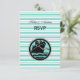 Art Deco Nautical Ship, Robins Egg Blue White Stripe Background - RSVP Response Card