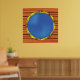 Transform your walls into a view from the sea with this stunning nautical porthole poster. The high quality illustration features a classic brass ship window looking out into a deep blue ocean filled with rising bubbles, all set against a rustic orange wood plank background. This maritime wall art is perfect for decorating a beach house, a childs pirate themed bedroom, or a nautical office space. It serves as a beautiful focal point that brings the calming aesthetic of the underwater world into your home decor. Whether you are a sailing enthusiast or just love coastal style, this vibrant print adds an adventurous touch to any room.
