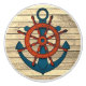 Door pull/Knob with image of a ship's wheel and anchor against rustic wood.