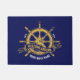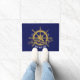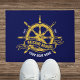 Nautical Ship Wheel Welcome Aboard Navy Blue Gold Doormat